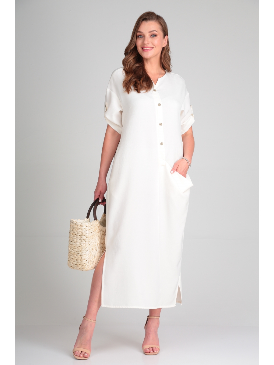 Повседневное платье в стиле бохо, выполнено из искусственного льна-вишера. Струящаяся по фактуре ткань, благодаря свободному прилеганию, создает кокон оберегающий от зноя и палящего солнца. Короткий рукав, который можно регулировать хлястиком на пуговице. Ассиметричная, функциональная застежка переходит в драпирующийся карман, с противоположной стороны карман спрятан в боковой шов. По бокам изделия разрезы.