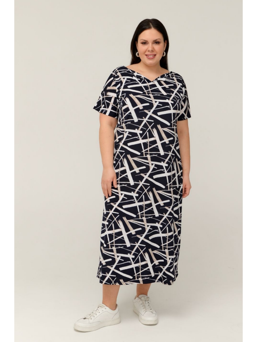 Платье больших размеров выполнено из трикотажного полотна масло. Длина миди. Длина по спинке/длина рукава/ширина по груди/ширина низ соответственно: