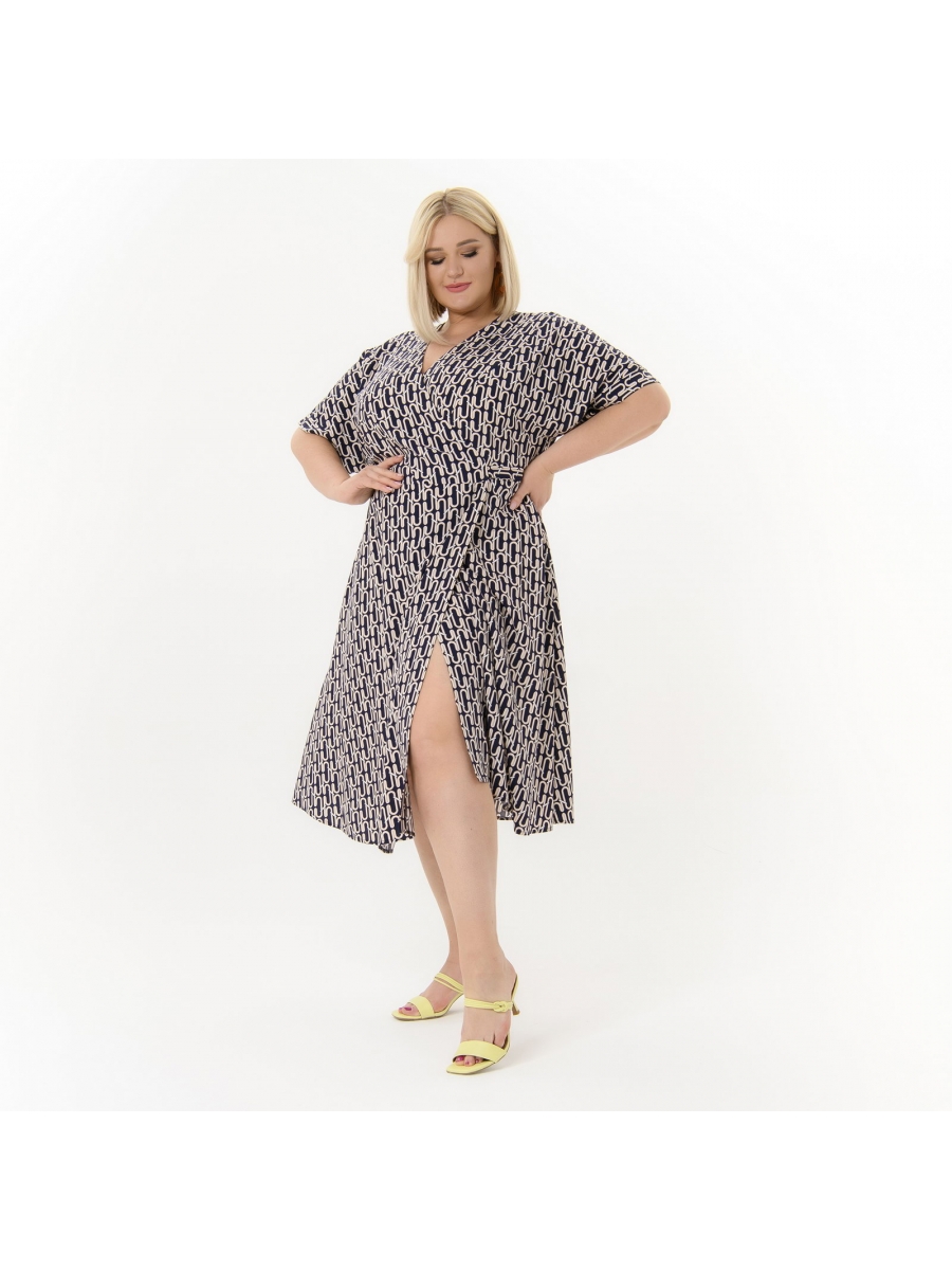 Легкое городское платье с запахом из вискозы, отрезное по линии талии. Линия плеча спущена и заканчивается планочкой. В боковых швах карманы. Завязывается на поясок по типу платья-халата.