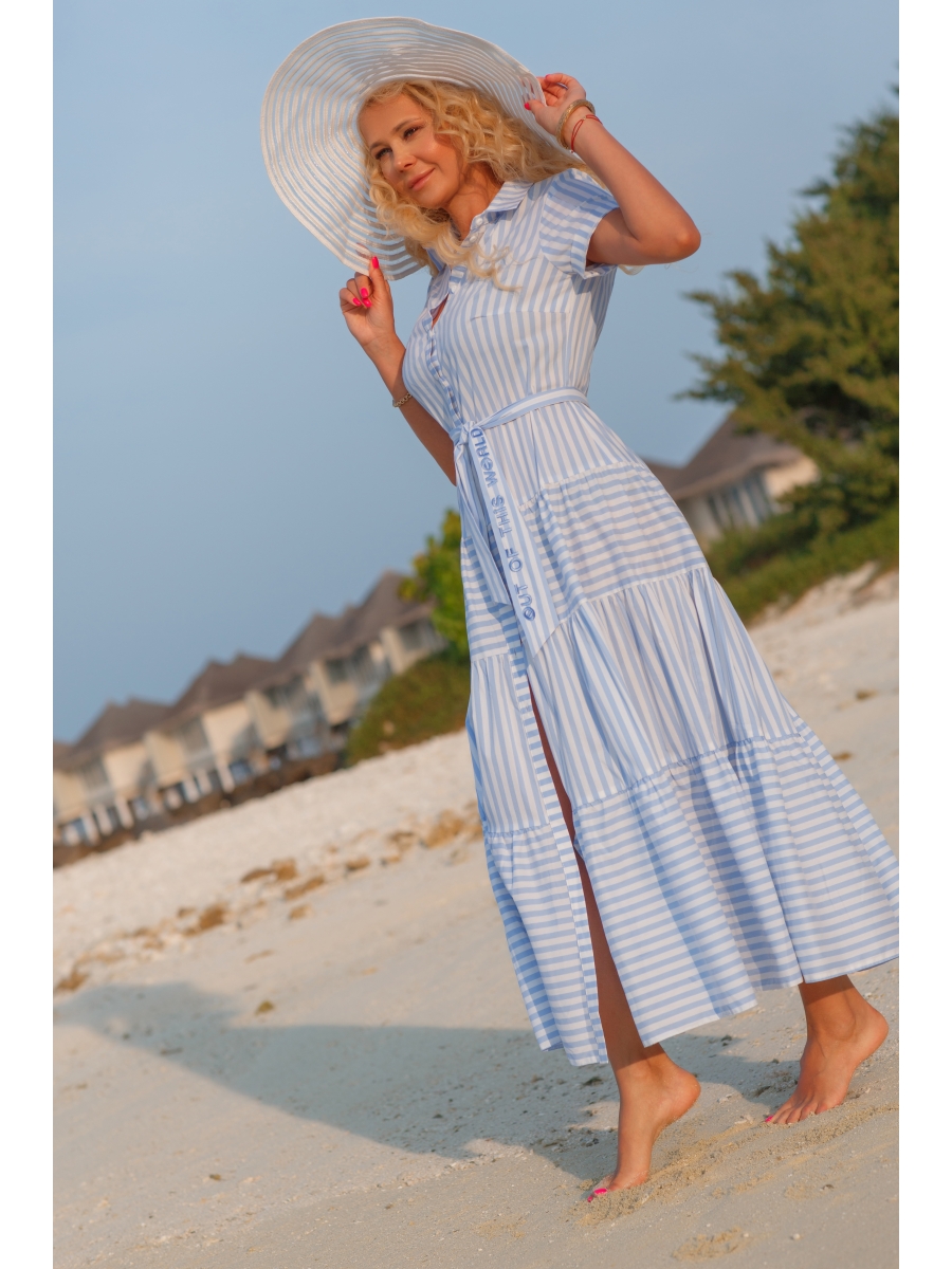 Платье с присборенными воланами по низу, выполнено из легкой плательной ткани. Спереди планка с