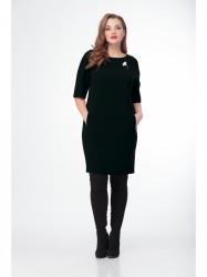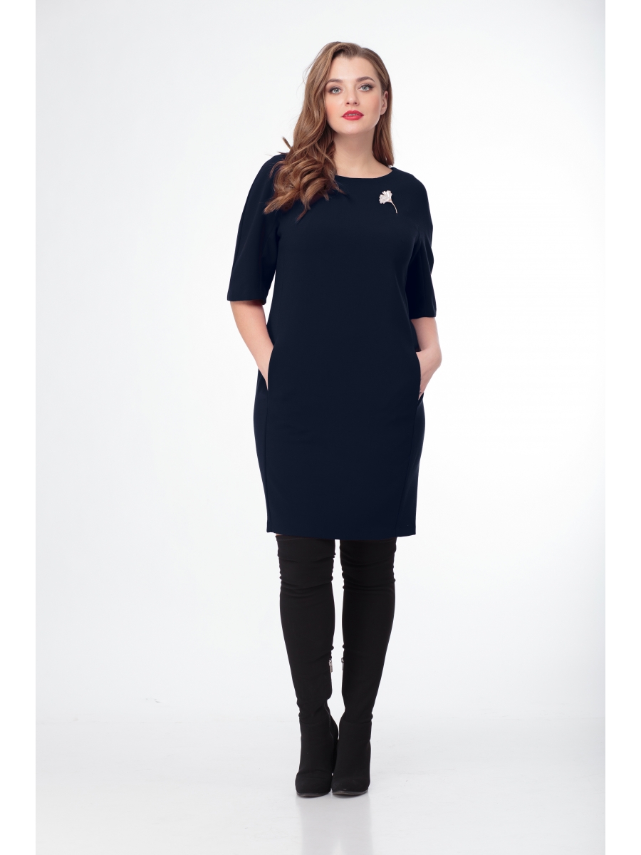 Платье прямого силуэта, по переду центральный шов, рельефы, переходящие в бочок, в рельефах рабочие карманы ;вырез горловины круглый. Пройма с притачной фигурной деталью. Спинка со средним швом и талевыми вытачками. Модель с подчёркивающим фигуру кроем.Вышивка по низу платья.