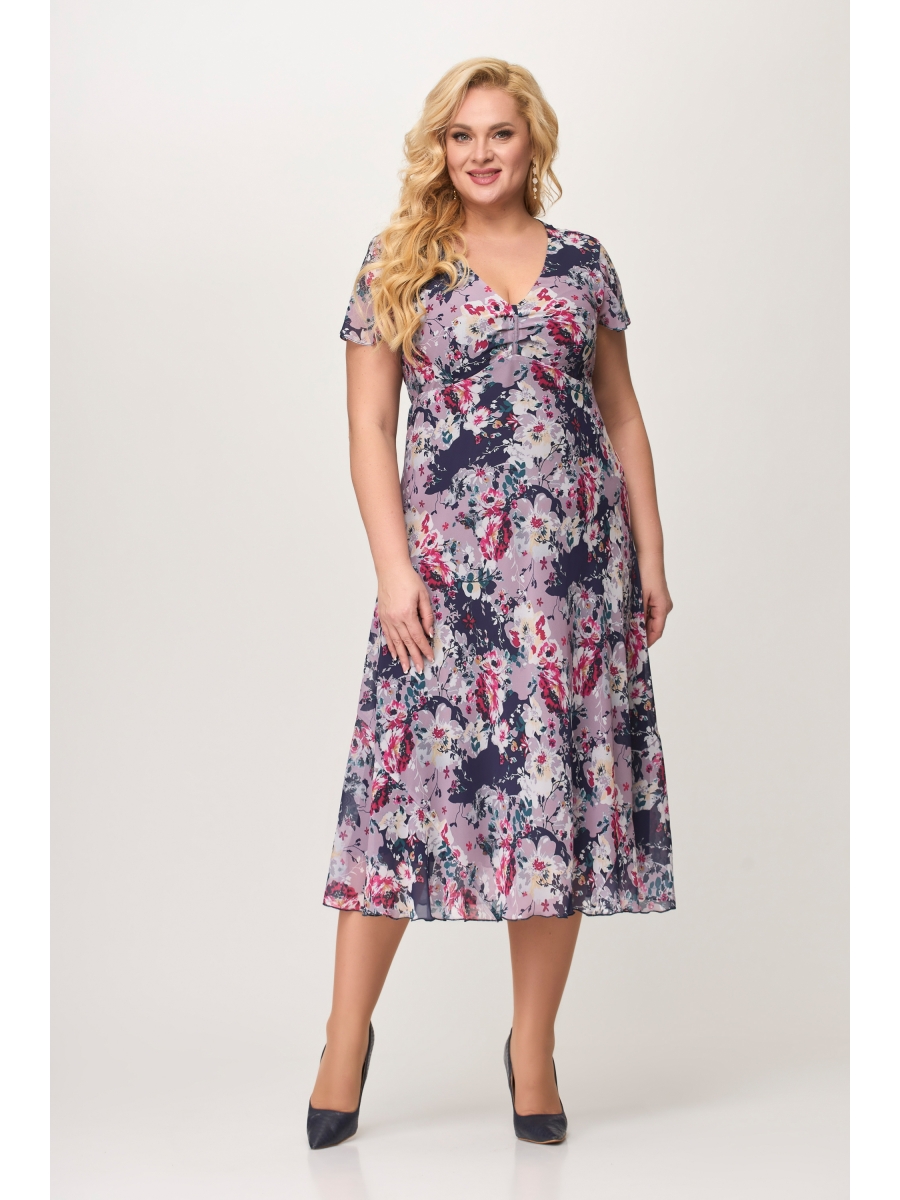 Платье женское прилегающего силуэта, с расширенной линией низа. Выполнено из шифона на шифоновой подкладке. V-образный вырез, рукав "крылышко", юбка покроя "по косой".
