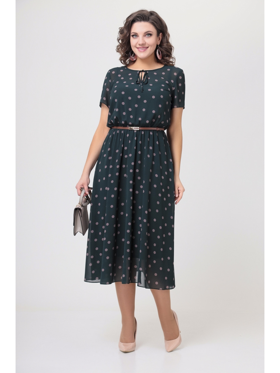 Платье полуприлегающего силуэта, выполнено из шифона, на трикотажной подкладке. Платье отрезное, с резинкой, по линии талии. Подкладка верхней части платья на бретелях. Рукав втачной короткий. Горловина округлой формы, по центру переда капелька с завязкой.