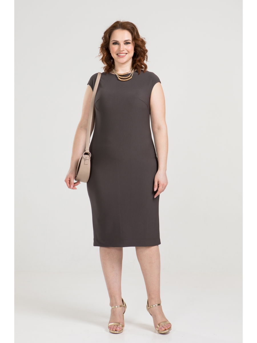Платье женское полуприлегающего силуэта.Спинка со средним швом, перед с нагрудными вытачками. Горловина круглая, плечо спущенное.