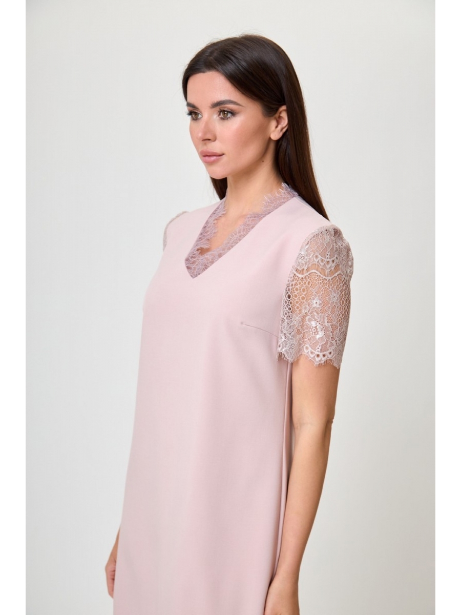 Короткое платье с гипюром - это стильное платье, которое выполнено из качественного текстиля и украшено французским кружевом. V-образный вырез горловины, горловина, рукава и низ платья декорированы кружевом. Застежка молния в среднем шве по спинке платья. Выполнено на подкладке.