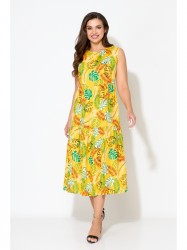 Легкое платье, свободного кроя без рукавов, отрезное выше талии, с воланами со сборкой, длинною макси.