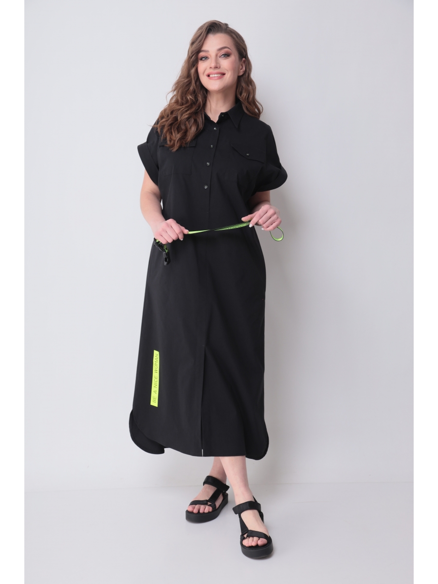 Платье рубашечного типа, свободного кроя - выполнено из приятной на ощупь хлопковой ткани. Универсальность кроя и натуральная легкая ткань сделают его любимым изделием Вашего гардероба в летний сезон. По переду сверху застегивается на пуговицы, снизу сбоку разрез, по спинке длиннее. Рукав короткий цельнокроеный приспущенный на отложенной манжете. Благодаря встречной складке на спинке имеет небольшое клешение. Украшением платья служит декоративный принт. По желанию фиксируется поясом из контрастной ткани, который идет в комплекте.