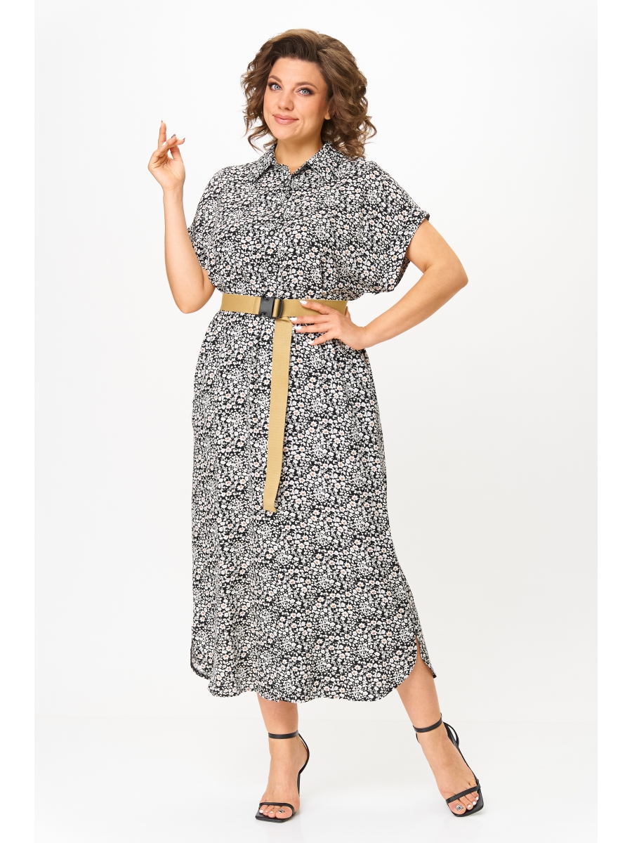 Украшением платья служит декоративный принт. По желанию фиксируется поясом, который идет в комплекте.