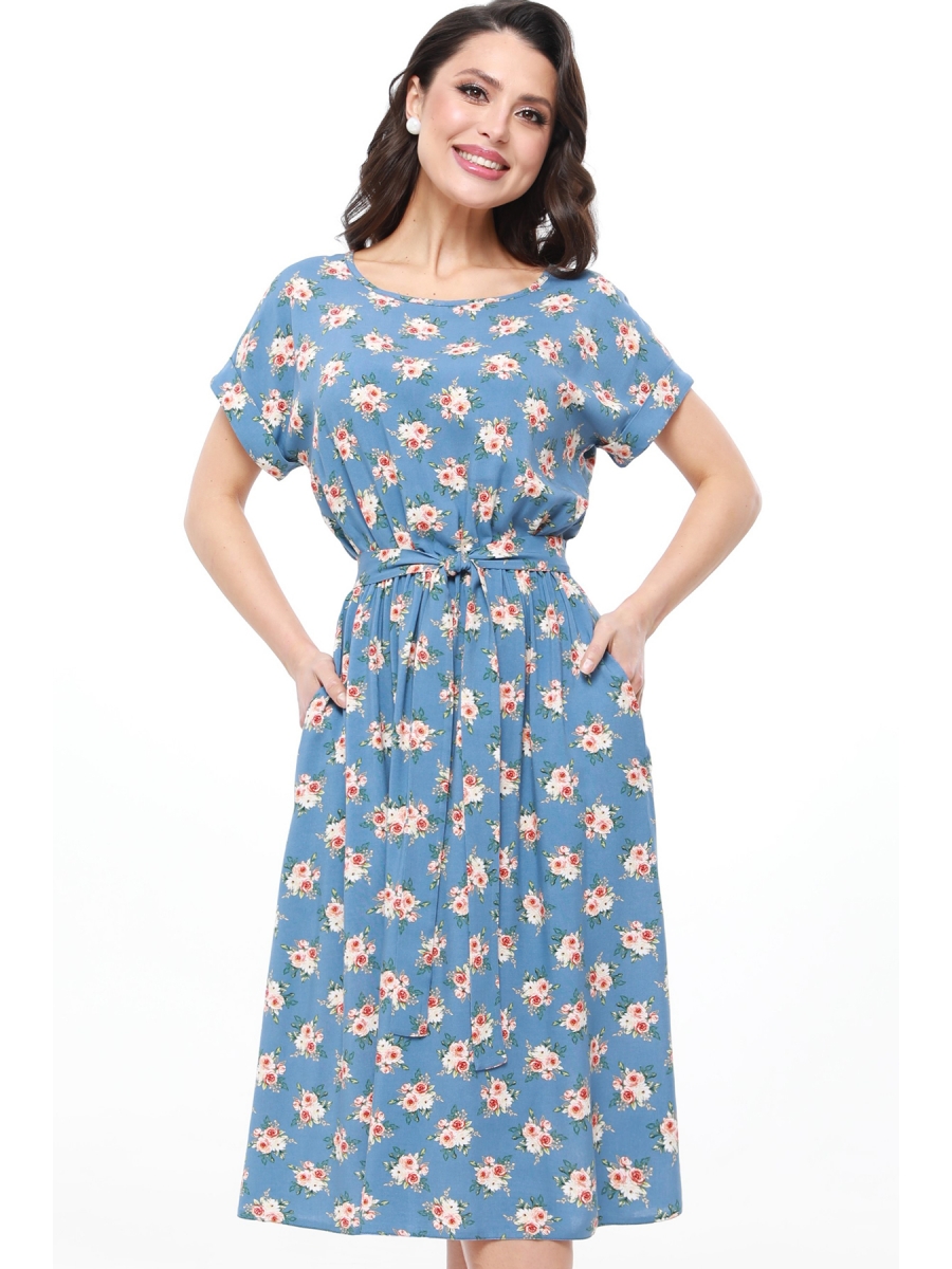 Лаконичное платье для каждого дня. Оно свободно сидит по фигуре, за счет расклешенной юбки и цельнокроеной проймы рукава. Сформировать приталенный силуэт поможет широкий пояс. Легкая натуральная вискоза, из которой сшито платье, будет комфортна в жаркую погоду.