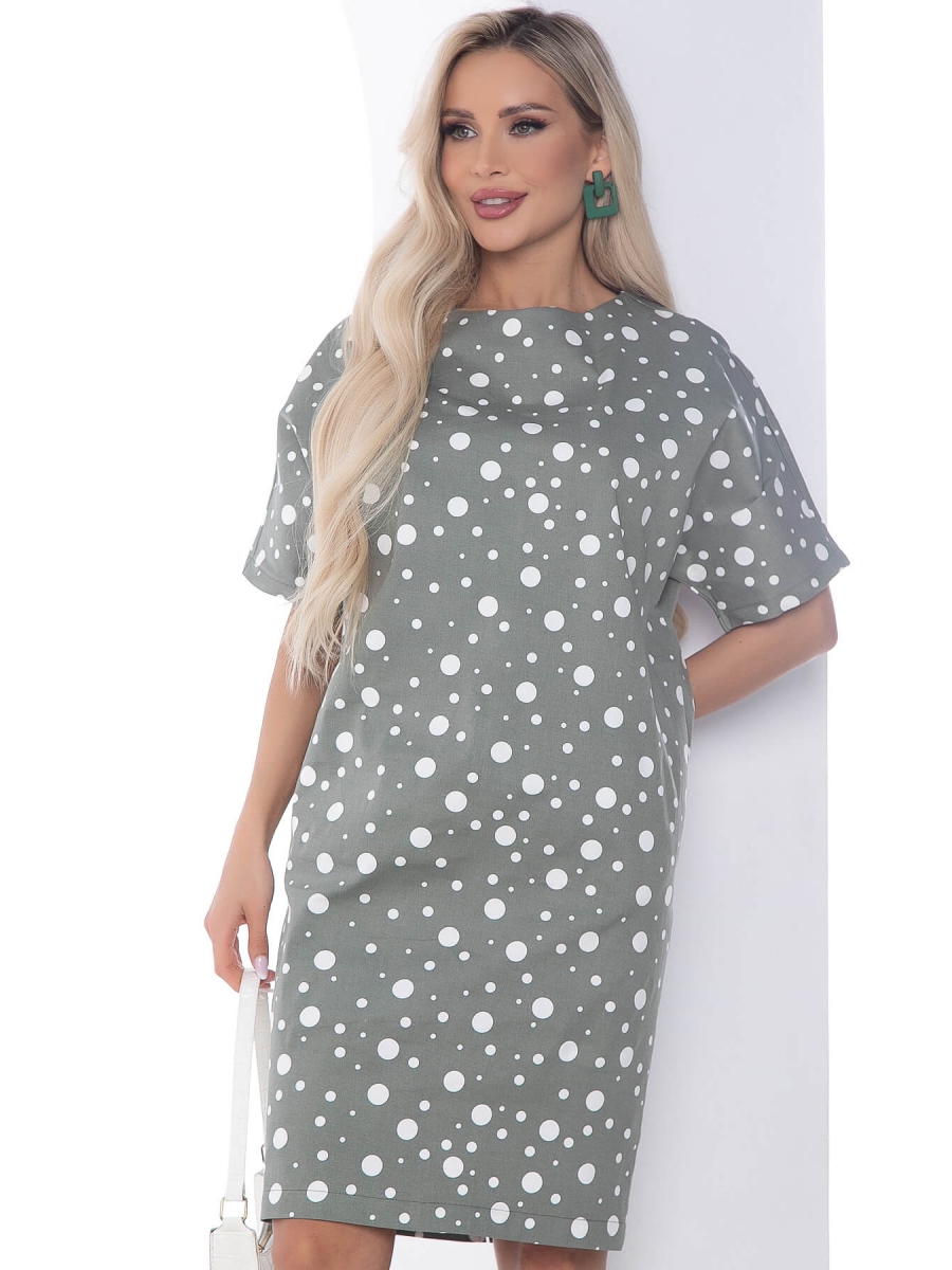 Стильное платье силуэта "бочонок", длиной выше колена, с коротким рукавом. Изюминкой данной модели является оригинальная расцветка. Элегантная модель с круглым вырезом горловины и коротким рукавом, с карманами. Романтично и женственно смотрится с поясом или ремнём (в комплект не входят). Прекрасный вариант повседневного платья для тех, кто стремится подчеркнуть свою женственность.