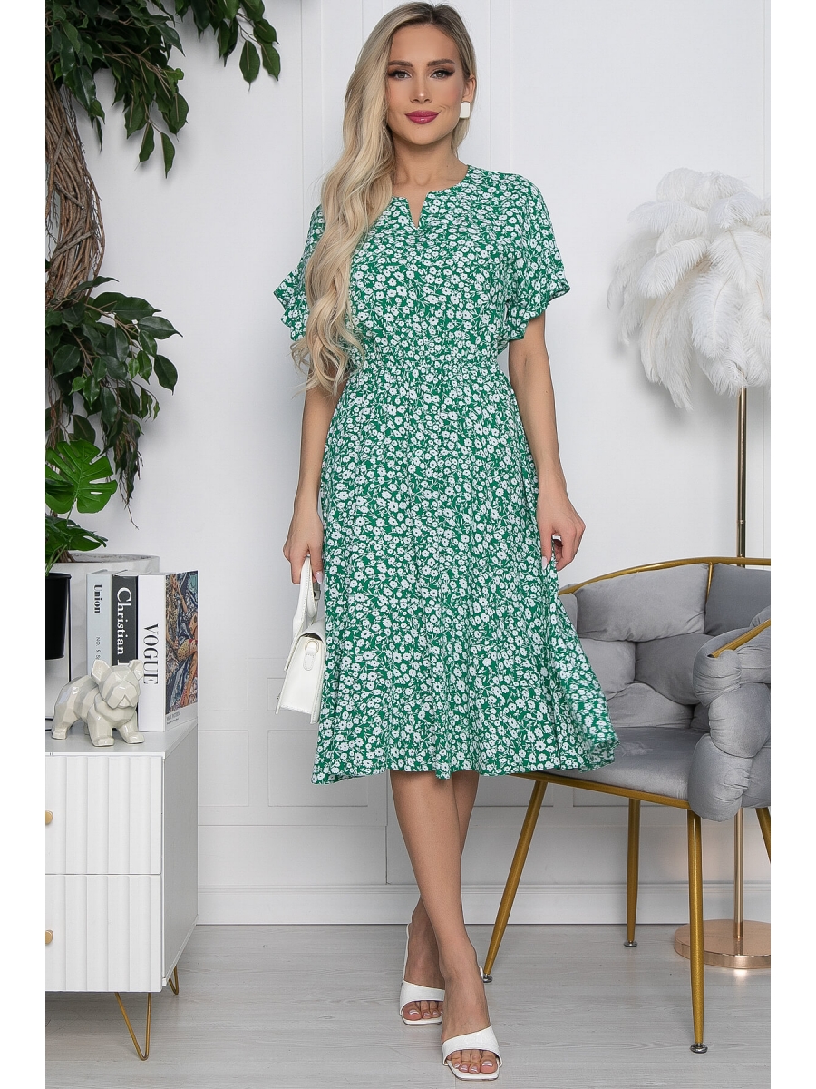 Шикарное платье с акцентными рукавами не оставит без внимания окружающих. Изделие украшает акцентный вырез по горловине. Рукав цельнокроенный с воланом по низу. Изделие отлично садится по фигуре благодаря вшитой резинке по линии талии. По низу изделия волан.
