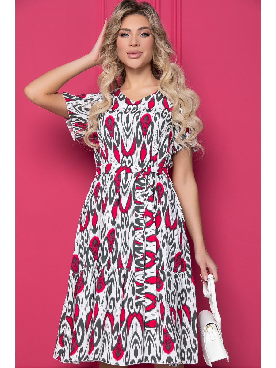 Безупречный стиль - это, в первую очередь, внимание к деталям. Платье А-силуэта прекрасно садится на любую фигуру, подчёркивая женственность линий. В комплект входит пояс из основной ткани, который позволит красиво подчеркнуть талию. Рукав втачной, укороченный.