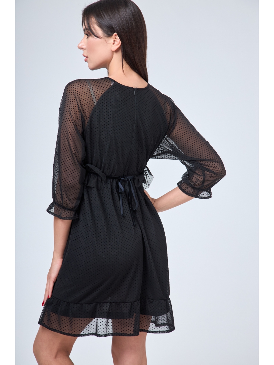 Платье свободного кроя, расширенное к низу, длиной до колена, по низу волан. Рукав реглан, длиной 3/4, на резинке. По линии талии резинка, по центру спинки потайная молния. Горловина округлая. Платье универсальное, комфортное, сядет на любую фигуру идеально, степень прилегания по талии можно регулировать декоративным съёмным поясом.