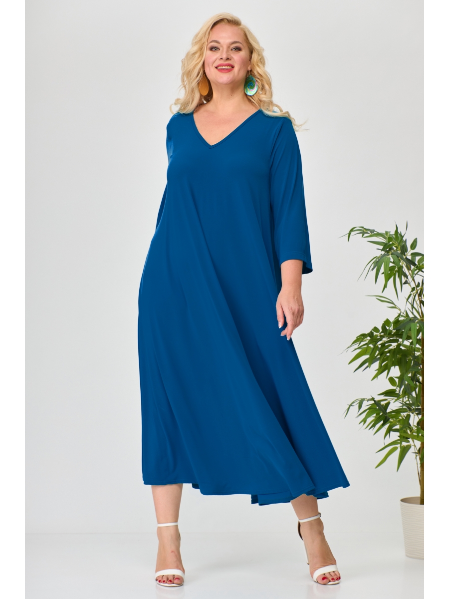 Свободное женское платье А-силуэта - идеальный вариант для офиса, прогулки или праздничного выхода. Достаточно обыграть его подходящими аксессуарами и обувью. Платье подойдет на любую фигуру, сроет все недостатки. Платье женское из трикотажного полотна "масла". Модель расширена к низу, по бокам карманы, рукав 3/4 длины. По полочке и спинке идет V-образный вырез горловины.