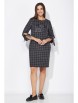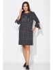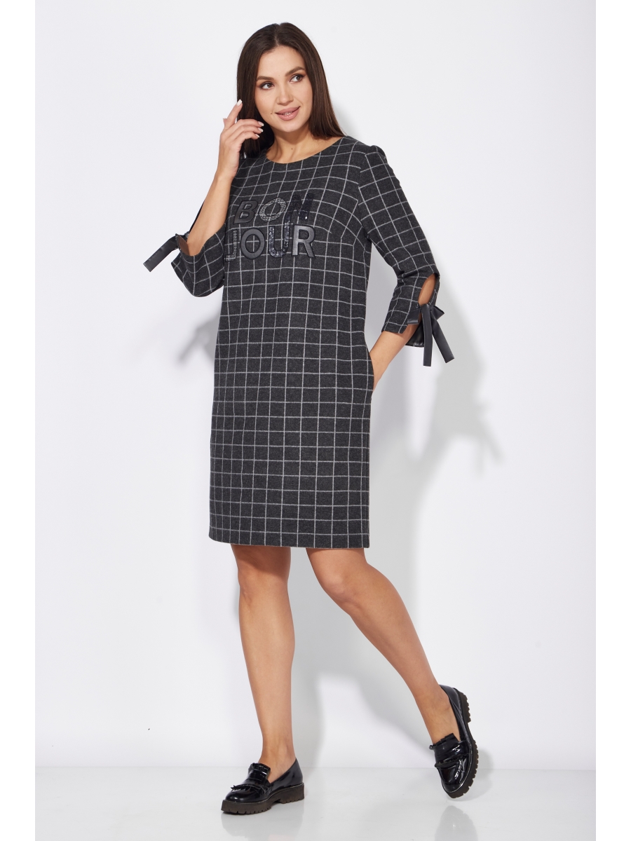 Платье женское, полуприлегающего силуэта с втачным рукавом, длиной 3/4. По низу рукава овальной формы - разрез, скрепленный завязками на бант. Завязки из отделочной ткани. Вырез горловины круглой формы. Перед платья задекорирован вышивкой. В боковых швах карманы. По спинке средний шов и талевые вытачки. Застежка на "молнию" в среднем шве.