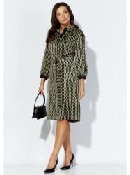 Платье женское, прямого силуэта с рукавом длинной 7/8. Рукав со спущенной линией плеча, по низу манжета с резинкой. Воротник рубашечный, на стойке. Застежка до линии талии, с отрезной планкой на петли и пуговицы. Из под кокеток переда и спинки-сборка. По боку платья, шлица. Линию талии подчеркивает съемный пояс с полукольцами.