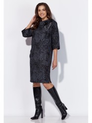 Платье женское, прямого силуэта с цельнокроеным рукавом, длиной 3/4. По переду и спинке фигурные рельефы. По переду карманы в рельефах с отделочной отстрочкой. По низу, в боковых швах, разрезы. Горловина оформлена небольшой, мягкой, цельнокройной строчкой.