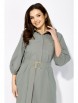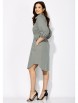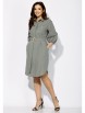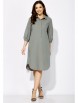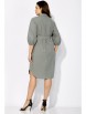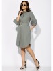 Платье женское, прямого силуэта с рукавом "реглан" длинной 3/4. Низ рукава присобран на резинку. Воротник рубашечный, на стойке. Застежка спереди, до линии талии, на пуговицы, с потайной планкой. Слева накладной карман с декоративной нашивкой. Карманы в боковых швах. По спинке мягкая встречная складка. Низ платья фигурной формы, со вставками по бокам, сзади чуть длиннее. Талию подчеркивает съемный пояс с пряжкой.