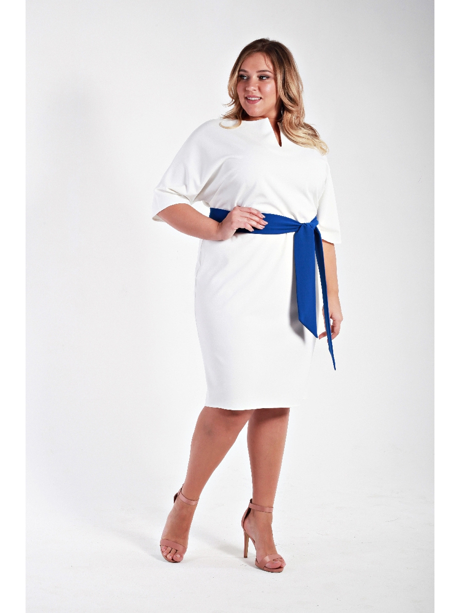 Классическое платье с цельнокроеным рукавом и вырезом "щель". Прямое платье с цельнокроеным рукавом - прекрасная база для любого комплекта. Простое, элегантное и стильное. В комплекте с платьем идет пояс контрастного цвета.