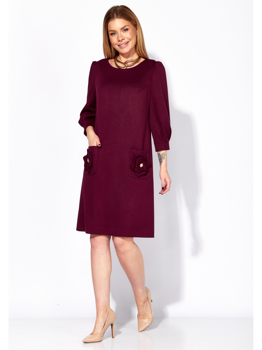 Оформить заказ →Платье женское, А силуэта, с рукавом длинной 3/4. Рукав втачной, со сборкой по окату, и мягкими складками по низу. По переду нагрудные вытачки. Вырез горловины круглой формы. Карманы накладные, акцентированы стилизированным цветком с декором. По спинке средний шов с отделочной нашивкой сверху.