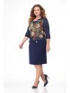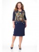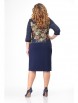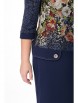 Нижняя часть платья, клапаны переда, отделочная деталь горловины округлой формы и манжеты рукавов выполнены из однотонного трикотажного полотна.