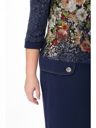Полуприлегающий силуэт, отрезное по линии бёдер. Верхняя часть переда и спинки, втачной рукав 3/4длины-из полотна с цветочным принтом.
