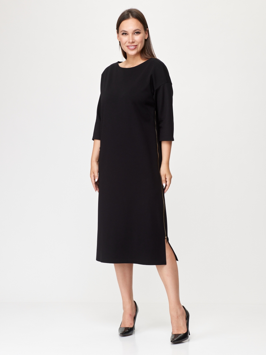 Эффектное, вместе с тем, прекрасно подходящее для повседневной жизни платье. Комфортный, прямой силуэт мягко сядет по фигуре и не будет сковывать ваших движений. Платье выполнено из приятного на ощупь трикотажа средней плотности, имеет спущенный рукав - длинной 7/8, по переду изделия - карман. Украшением платья служит боковой разрез, который оформлен молнией. Платье прекрасно сочетается разной по стилю обувью.