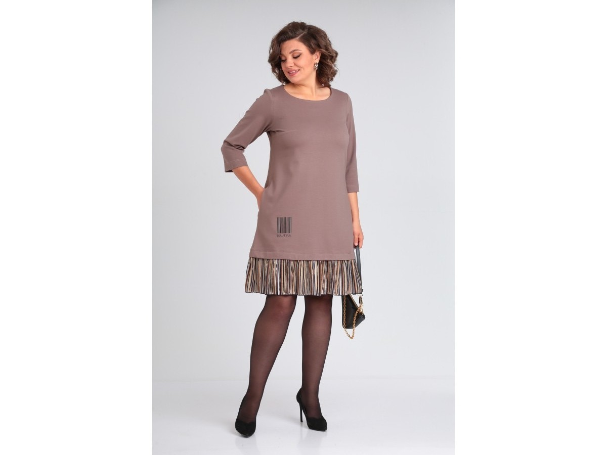 Платье А-образного силуэта станет уютным и базовым изделием в вашем гардеробе. Платье женское трикотажное, для повседневной носки. Платье средней длины, с круглым вырезом горловины, по спинке застежка на декоративную металлическую молнию. Перед и спинка цельные, по низу платья из-под складки притачной волан со сборкой из отделочного полосатого материала. В боковых швах - карманы. В качестве декора по переду изделия - принт. Платье прекрасно дополняется различными аксессуарами и сочетается с разной по стилю обувью, а также можно сочетать с лосинами или брюками.