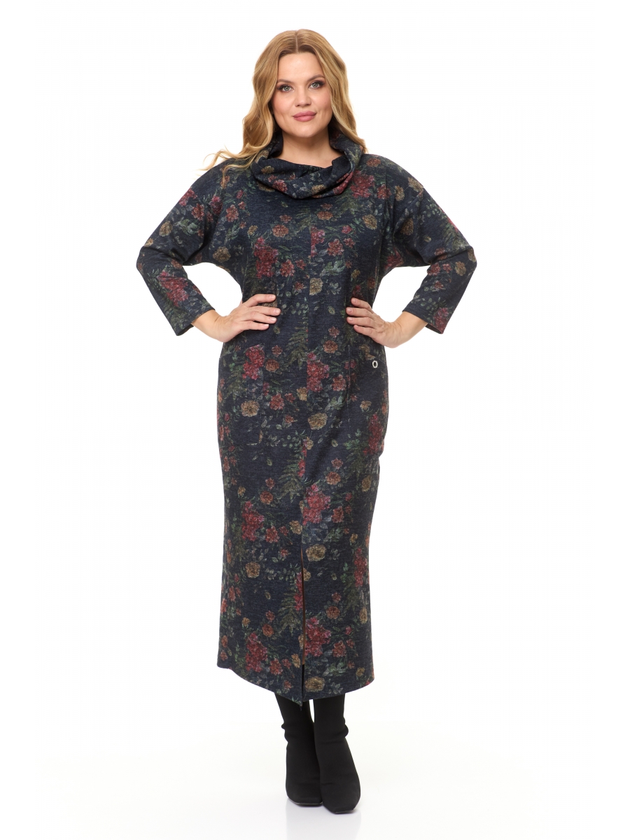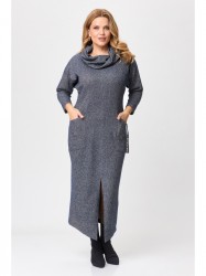 Актуальное удлиненное платье выполнено из мягкого трикотажа. Изделие полуприлегающего силуэта хорошо садится по фигуре, скрывая любые недостатки и подчеркивая Ваши достоинства. Центральный шов по переду переходит в разрез до колена, удлиняя силуэт. Рукав приспущенный, длина 7/8. Украшением служат объемный воротник, который прекрасно прячется под верхней одеждой, также имеются накладные карманы, один из которых декорирован блочкой со стразами. Идеально сочетается с различной по стилю обувью и бижутерией.