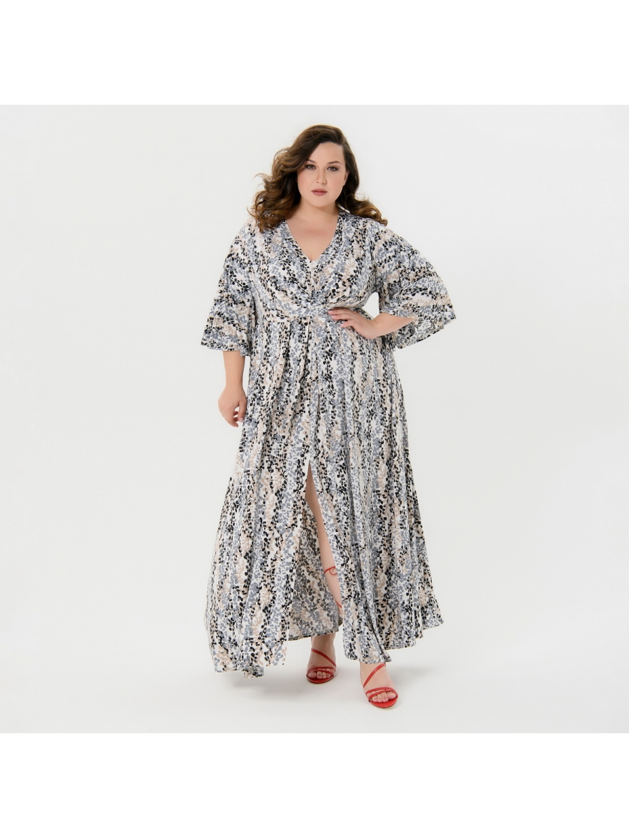 Элегантное длинное платье из струящегося трикотажа - "масло". V-образный вырез горловины зрительно вытягивает силуэт. По среднему шву юбки переда разрез.