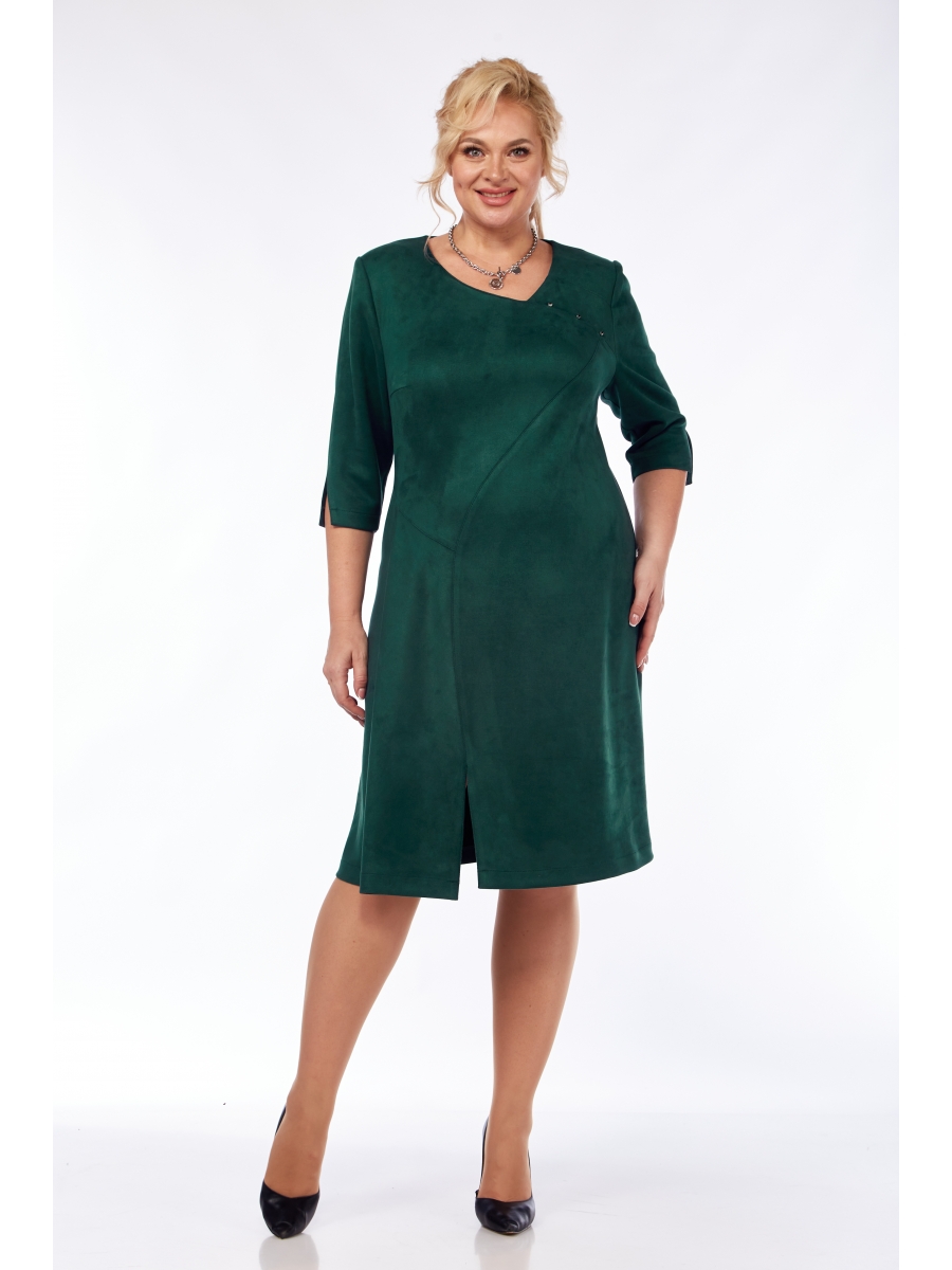 Оформить заказ →Нарядное платье полуприлегающего силуэта - отличный вариант, когда нужно что-то для особого случая. Модель выполнена из искусственной замши на стрейчевой основе. Материал приятен к телу, хорошо держит форму, сохраняя силуэт. Богатая, выразительная фактура ткани изящно подчёркивает фигуру. Перед платья асимметричный, с кокеткой, фигурным рельефом с разрезом по низу изделия и наклонным швом с выходящей из него складкой. Спинка со средним швом. Рукав втачной с вертикальным швом и разрезом в нём. Длиной 3/4. Отделкой изделия служат пришивные стразы (могут отличаться от представленных на фото).