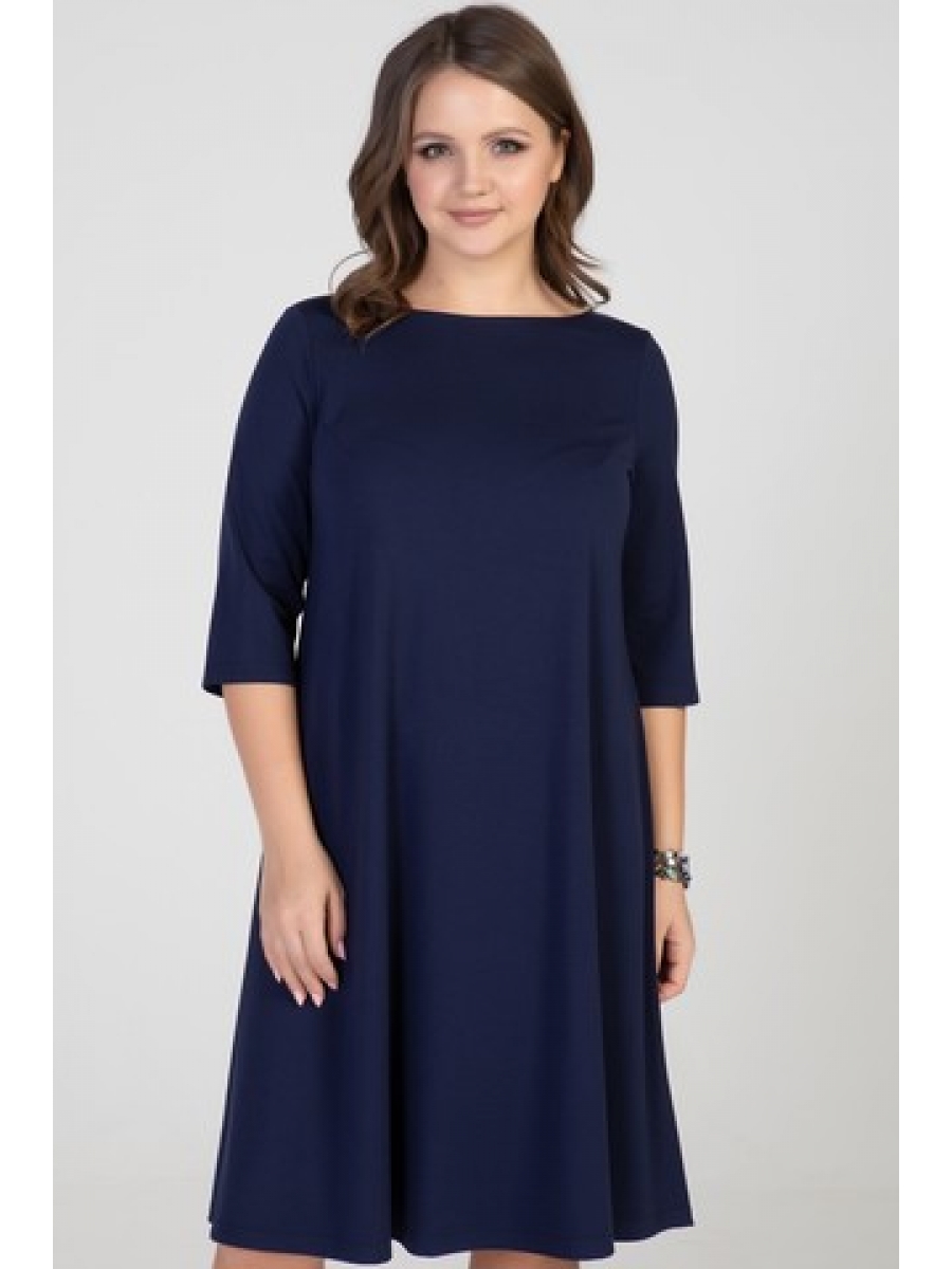 А-образный силуэт и простота кроя в сочетании с оригинальным декором по спинке делают его неповторимым!Платье выполнено из мягкого трикотажного полотна средней плотности темно-синего цвета, рукав 3/4, круглая горловина. По спинке V-образная вставка из трикотажной мягкой сетки. Декоративный бант из атласной ленты.Без застежки, без подклада.Цвет чернильно-синий.
