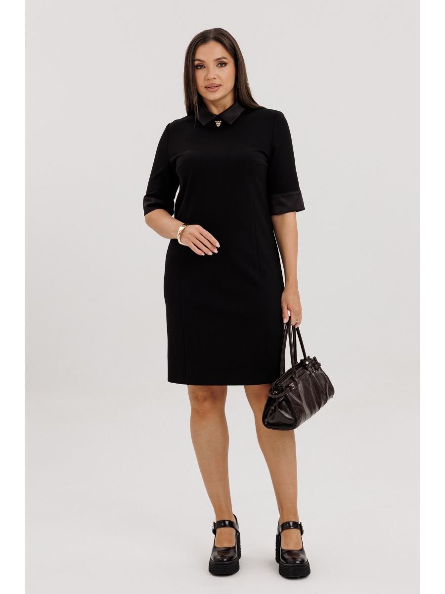 Детали: длина до колена, рукав ¾, строгий воротник с акцентной деталью.