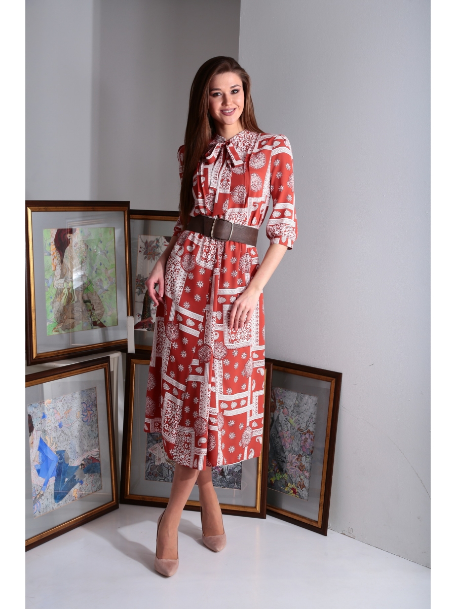 Невероятно красивое платье, выполненное из нежного шелка, сделает Ваш образ воздушным и невесомым. Платье отрезное по талии, расширенно к низу. Верх переда платья декорирован защипами. Горловина оформлена стойкой, переходящей в элегантно завязывающий бант. Нижняя часть переда изделия с подрезом по центральной части, в котором вставлена складка. Спинка со средним швом, в котором имеется застежка на потайную молнию. Рукав втачной по окату со складками, по низу рукава выполнены манжеты, застегивающиеся на пуговицы. Платье комплектуется съемным широким ремнем. Это платье безусловно станет одним из ваших любимых, ведь свободный крой позволяет скрыть малейшие недостатки фигуры, подчеркивая ее достоинства!
