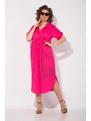 Эксклюзивное и воздушное платье-рубашка модного кроя, выполнено из натурального льна, который подарит Вам незабываемые ощущения комфорта и свободу движениям. Платье с цельнокроеным спущенным рукавом с регулировкой на пате. Застежка центральная на петли и пуговицы, с V-образным вырезом горловины с небольшим отложным воротником. Чуть ниже линии груди предусмотрен подрез с небольшой сборкой. По бокам расположены рабочие карманы. Низ изделия овальной формы с разрезами! Спинка цельная, без особенностей. По полочке ассиметрично расположена печать – накат монстера. Идеальный выбор для комфортного и стильного образа!
