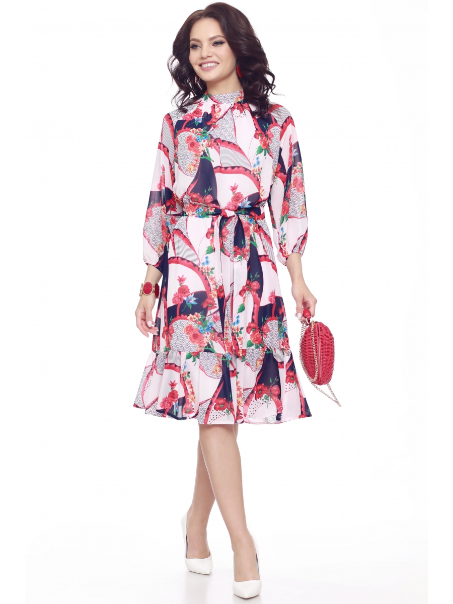 Богемное платье с рукавом реглан и воротничком-стойкой выполнено из шифона с подкладом. За счет свободного силуэта с поясом и воланом по низу юбки платье получает мягкие свободные формы, что выглядит очень романтично. Рукава присобраны на тоненький манжет. Застежка платья на пуговицах. Абсолютно самодостаточная вещь, и в пир, и в мир.