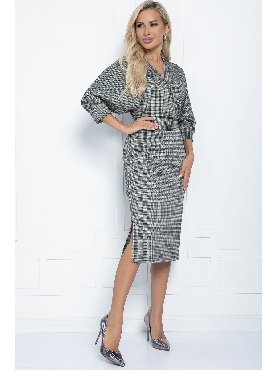 Невероятно женственное платье из трикотажа - вариант, который прекрасно подойдёт для создания очаровательного образа. Верх платья на запах, с декоративными пуговицами до талии подчеркивает зону декольте. Трикотажное платье прекрасно подойдёт в качестве повседневного варианта и будет хорошо сочетаться как с туфлями, так и с кедами. Рукав цельнокроенный по типу "летучая мышь", по низу манжет. В комплект входит пояс из основной ткани на пряжке. По боковым швам изделия соблазнительные разрезы.