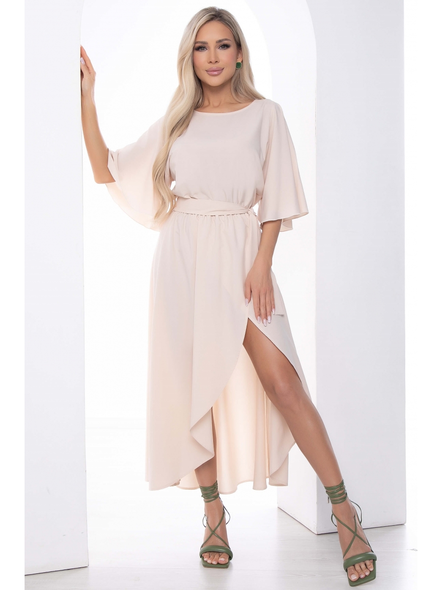 Стильное праздничное платье макси свободного силуэта с акцентными рукавами. Платье вечернее длинное без застёжки легко надевать и снимать. Будет прекрасным решением на торжество, свадьбу для подружек невесты, выпускной, если дополнить его подходящей обувью и аксессуарами. Подойдет для разных типов фигур, скроет нюансы при необходимости. Горловина — лодочка. В комплекте тканевый пояс.