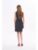 Платье-сарафан мини полуприлегающего силуэта с вырезом каре по переду и сзади. Низ платья стремится к лёгкой трапеции. Застёжка на потайную молнию сбоку.