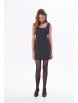 Платье-футляр прилегающего силуэта с акцентной застёжкой на пуговицы по переду длиной выше колена. Горловина круглая.