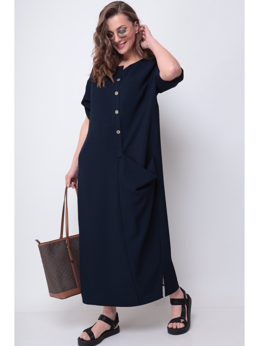 Повседневное платье в стиле бохо, выполнено из искусственного льна. Струящаяся по фактуре ткань, благодаря свободному прилеганию, создает кокон оберегающий от зноя и палящего солнца. Короткий рукав, который можно регулировать хлястиком на пуговице. Ассиметричная, функциональная застежка переходит в драпирующийся карман, с противоположной стороны карман спрятан в боковой шов. По бокам изделия разрезы. Изделие может сочетаться как с кедами, босоножками, так и туфлями. Универсальность и практичность платья сделают его любимым в Вашем гардеробе в наступающем летнем сезоне. Изделие подойдет на рост 170 см.