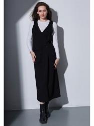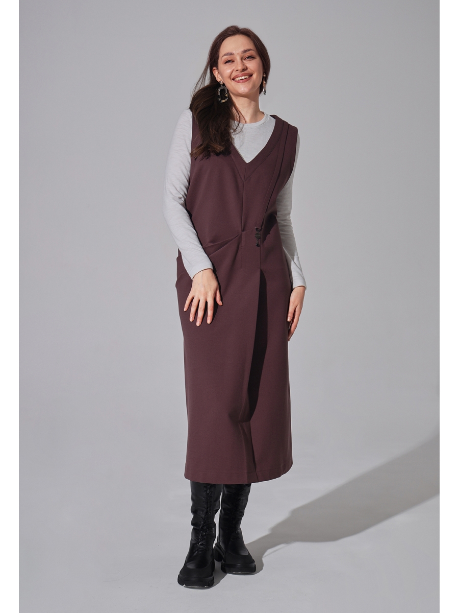 Удлиненный сарафан прямого силуэта выполнен из плотной ткани "джерси". Оригинальное решение полочки, в складке расположен карман. Сзади разрез. Длина по среднему шву спинки от 124 до 127 см. Прекрасно скрывает все недостатки фигуры в больших размерах.