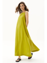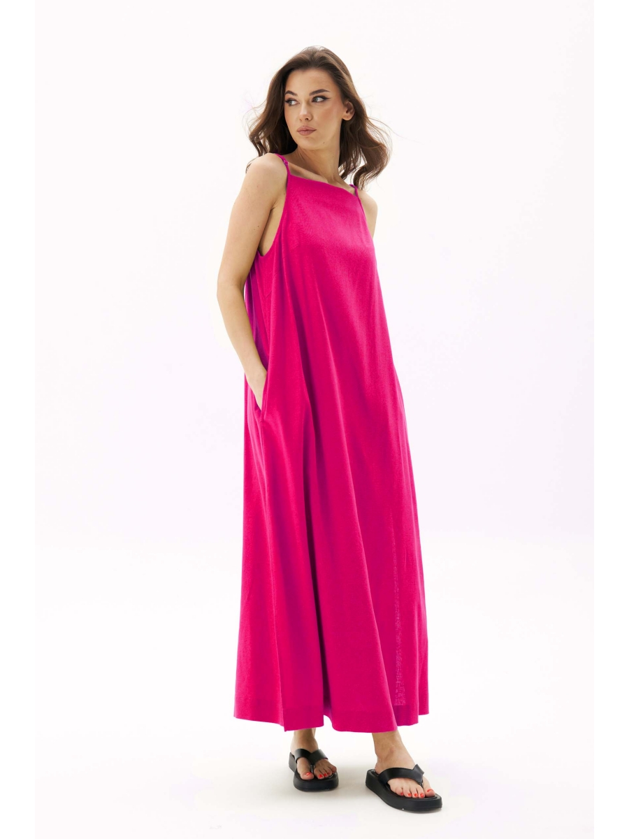 Льняное платье-сарафан - лучшее решение для жарких дней. Оно лёгкое, летящее, комфортное, универсальное, позволяющее телу дышать, ловя малейшее дуновение ветра. А-образный силуэт, длина макси, эффектные разрезы по боковым швам, удобные карманы.