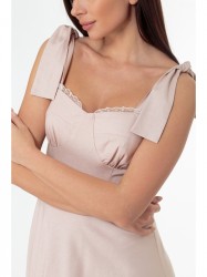 Платье-сарафан с завязывающимися бретелями для жаркого лета! Выполнен из ткани-однотон пастельно-розовых тонов.