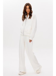 Костюм состоит из свободной лёгкой куртки на разъёмной тесьме - молнии и прямых брюк.