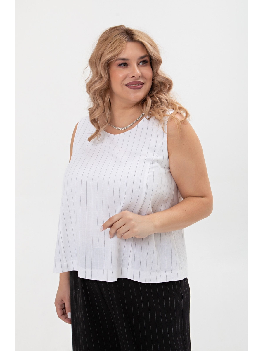 Легкий дышащий топ полуприлегающего силуэта из льняной ткани. Прилегание по переду за счет вертикальных рельефов. Круглый вырез горловины и проймы обработаны обтачкой. Модель отлично сочетается с брюками или юбками. Комфортный вариант для жаркого лета!