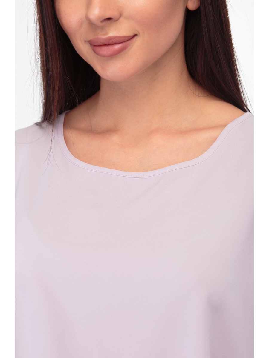 Топ свободного силуэта, немного расширенного к низу, перед двойной, не просвечивает, по спинке выполнен разрез-щель с застёжкой на навесную петлю и красивую пуговицу.
