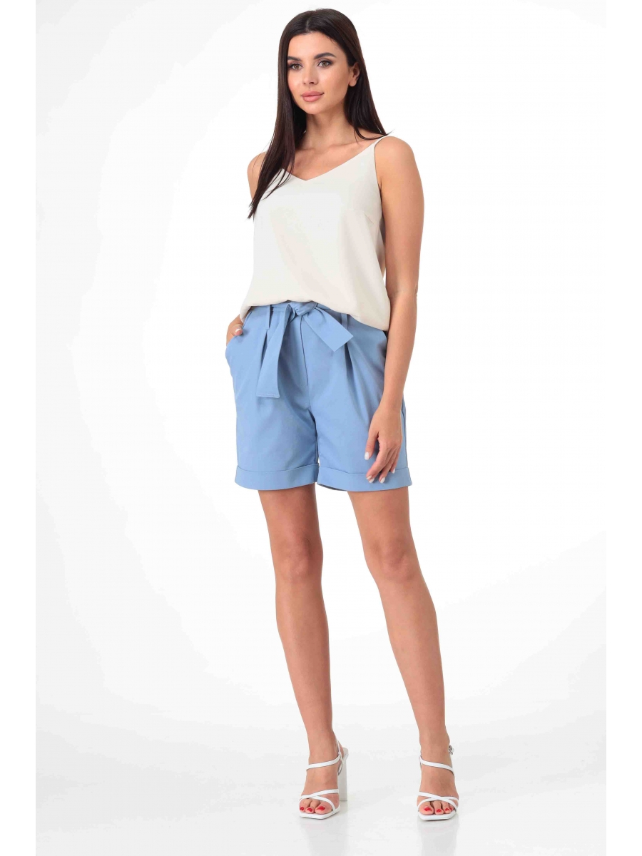 Топ с V-образным вырезом, прямого силуэта. Топ на регулируемых бретелях, что позволяет менять глубину выреза. Выполнено из блузочной, летней ткани. Спинка цельнокроеная. Перед топа с нагрудными выточками, двойной.