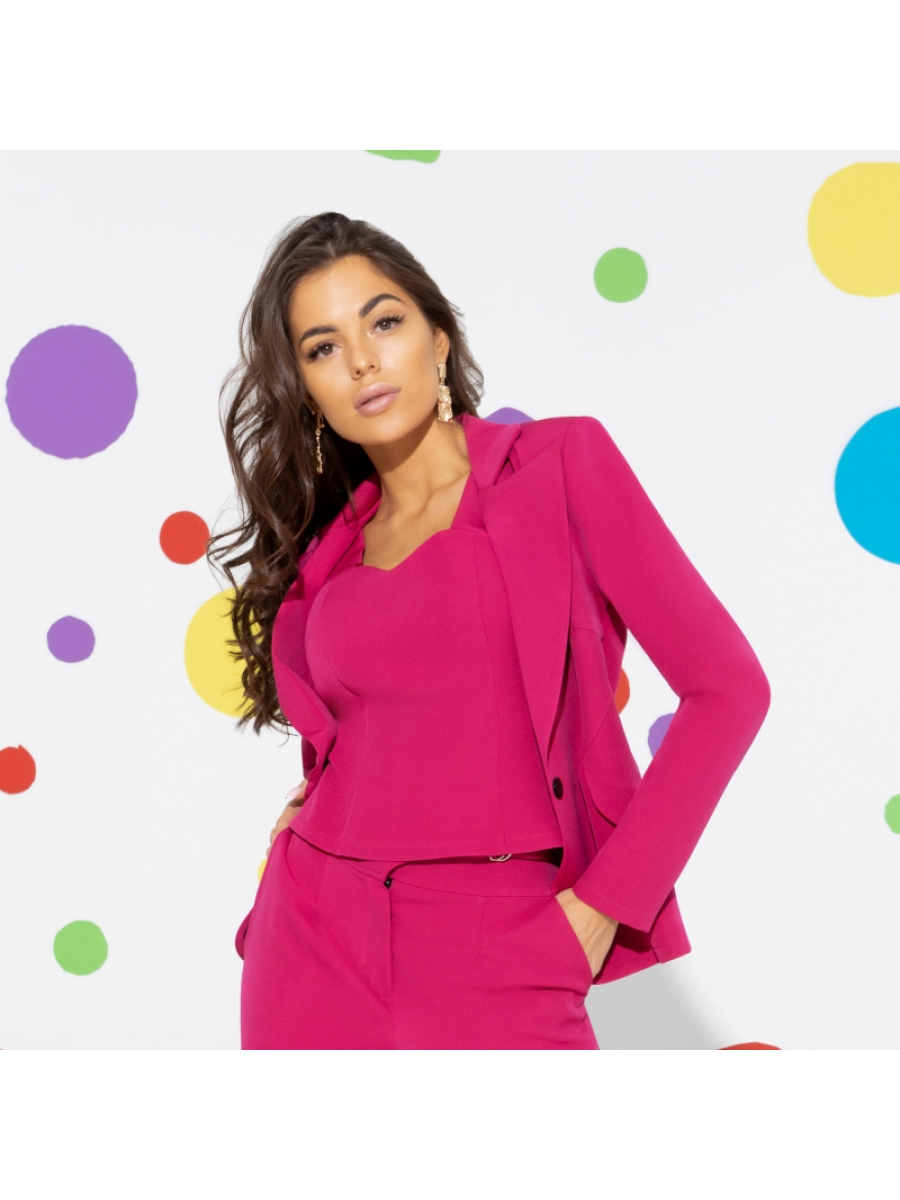 Самая вкусная деталь всего образа. Да, речь про топ шикарного оттенка и трендового кроя. Корсетный силуэт, максимально открытые плечи и оголенная зона ключиц.