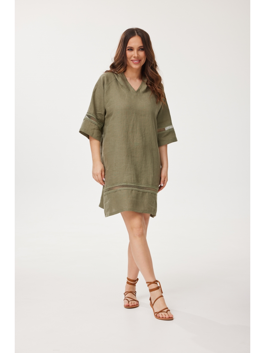 Туника изготовлена из качественного натурального льна с эффектом мятости свободного силуэта с капюшоном и рукавом - реглан. Отлично подойдёт для летнего отдыхаю. Горловина окантована. По низу изделия и по низу рукава - отделка тесьма-шитьё из хлопка.